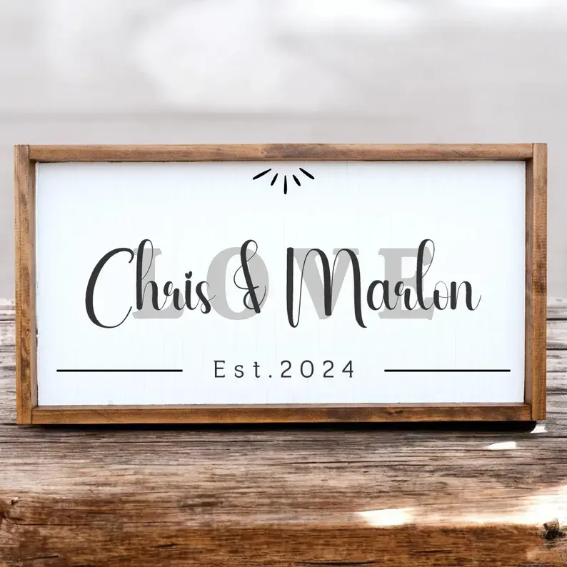 Custom Family Name Wooden Sign for Dad, Personalized Family Established Framed W